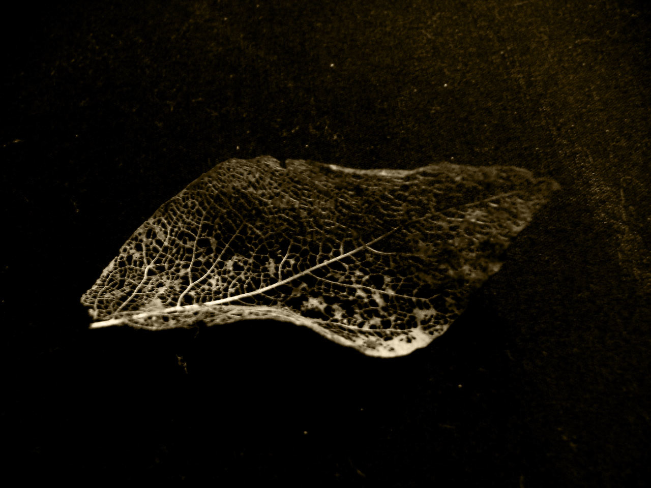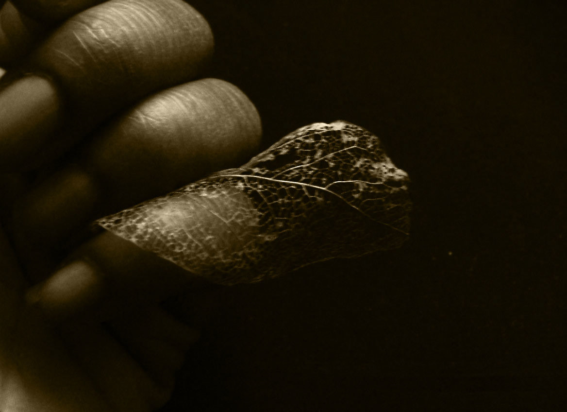 a decayed leave caught at the end of winter
