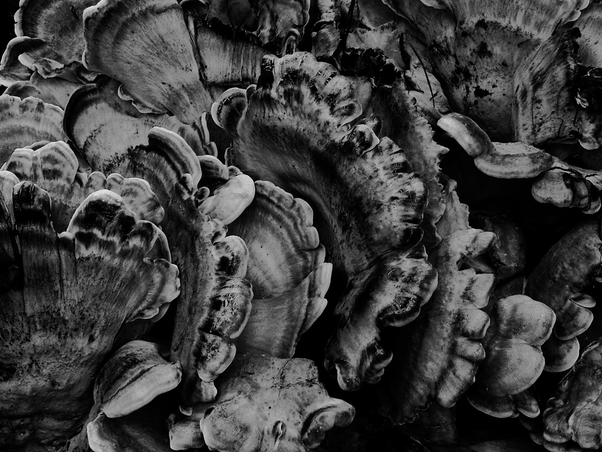 A cluster of fungi decays the earth as it grows.